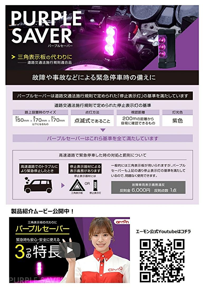 ※三角表示板の代わりに(道路交通法施工規則適合品) 故障や事故などによる緊急停車時の備えに